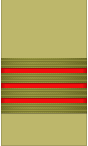 Before 1918, officers of the Artisan Branch did not wear colored distinction cloth, but were distinguished from the Military Branch by not using the curl in the rank stripe.